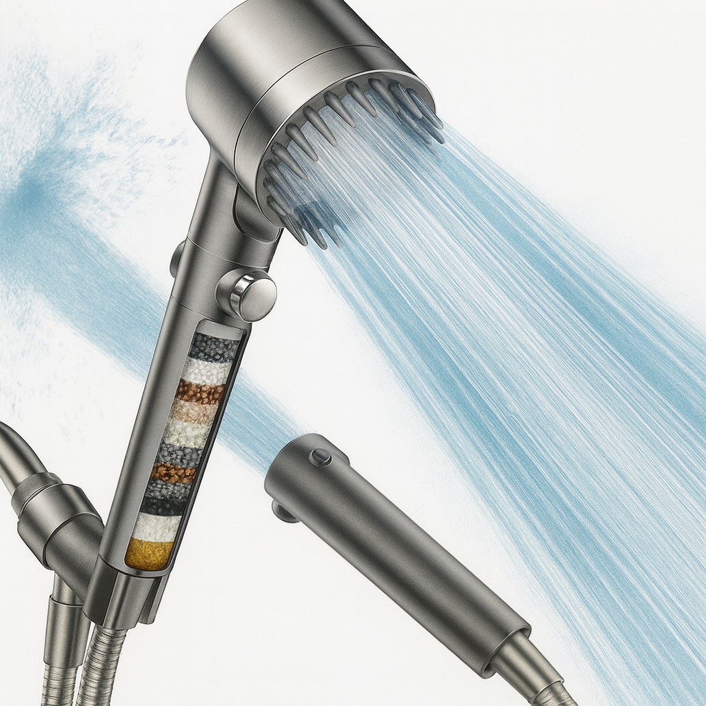 Nuestro cabezal de ducha filtrante purifica el agua, mejora la presión y transforma tu ducha en una experiencia revitalizante.
